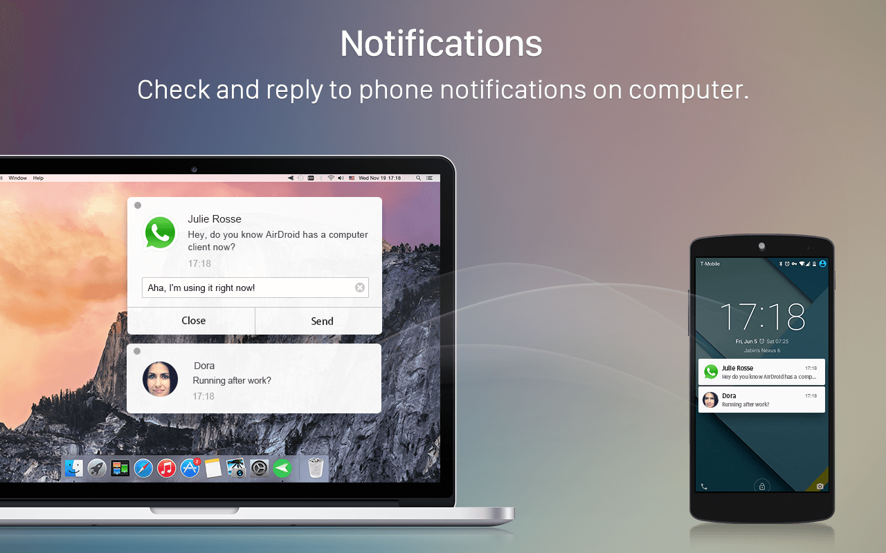 Apart from that unlike airdroid airmore is free and while it lacks features like remote camera screen recorder ability to make calls take action on notifications and desktop clients it s still among the best airdroid alternatives that you can reliably use. Airdroid makes your multi screen life easier and more focused by helping you access and manage your phone from any computer anywhere. Featured on google play in 30 countries.