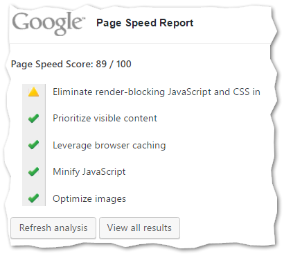 enable google page speed dashboard widget