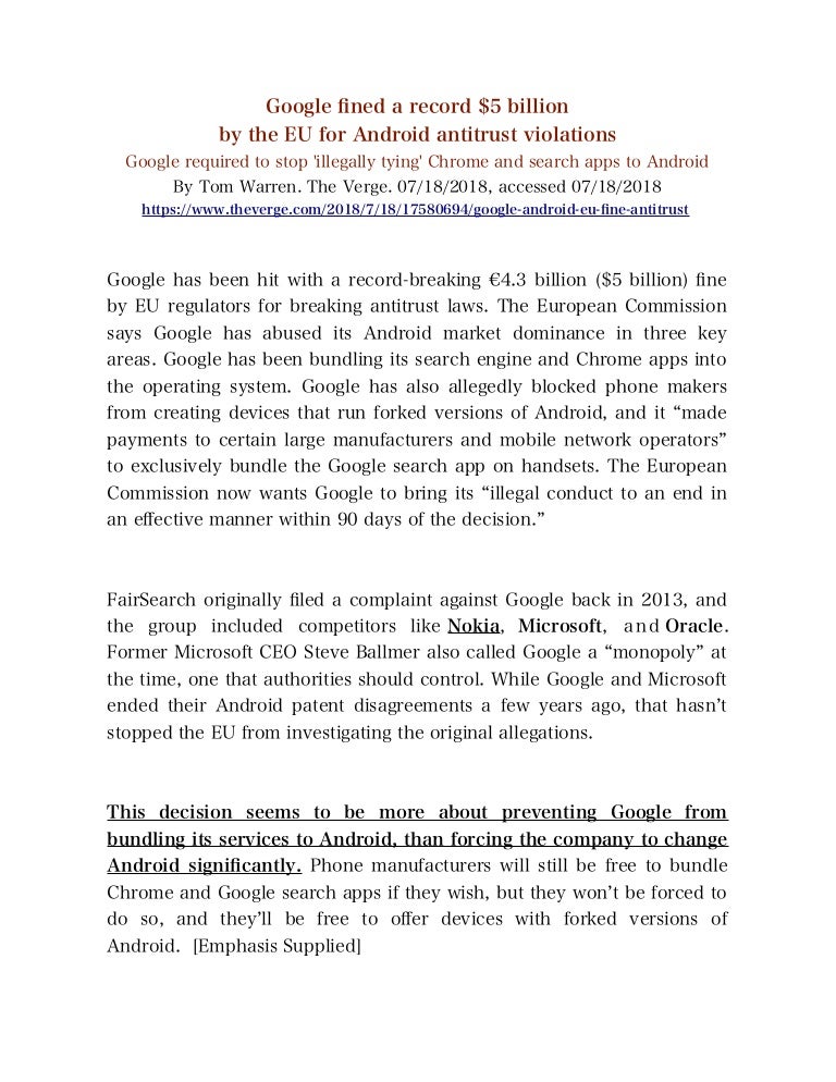 https www npr org 2018 07 18 630030673 eu hits google with 5 billion fine for pushing apps on android users