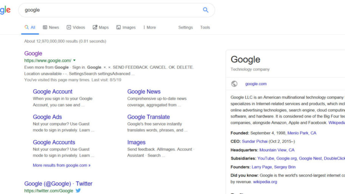 using google search engine results page