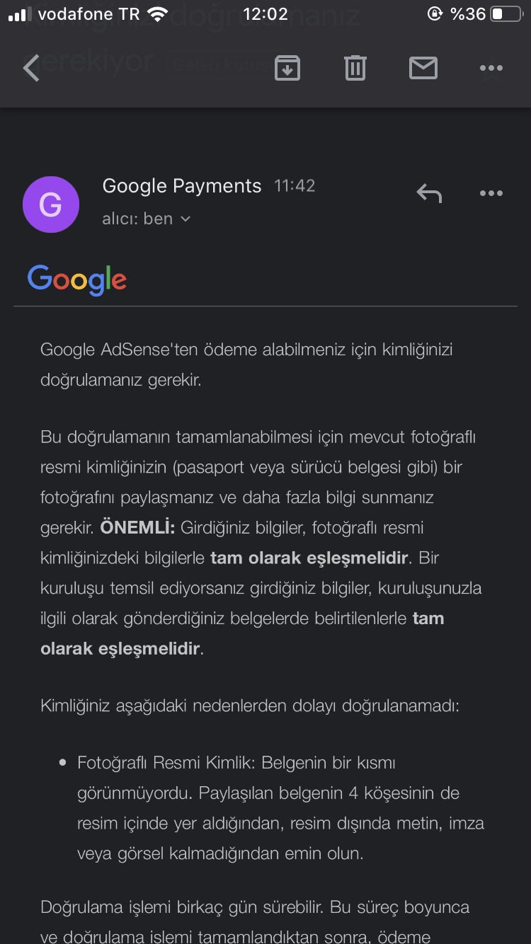Hesabınızın güvenliğini korumak amacıyla google ın size herhangi bir ödeme gönderebilmesi için adresinizi doğrulamanız zorunludur.
