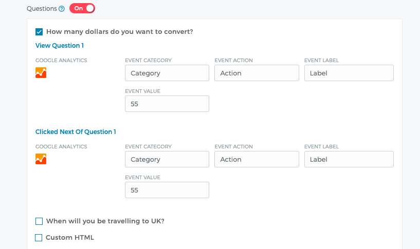 custom parameter event tracking goal setup in ga app web
