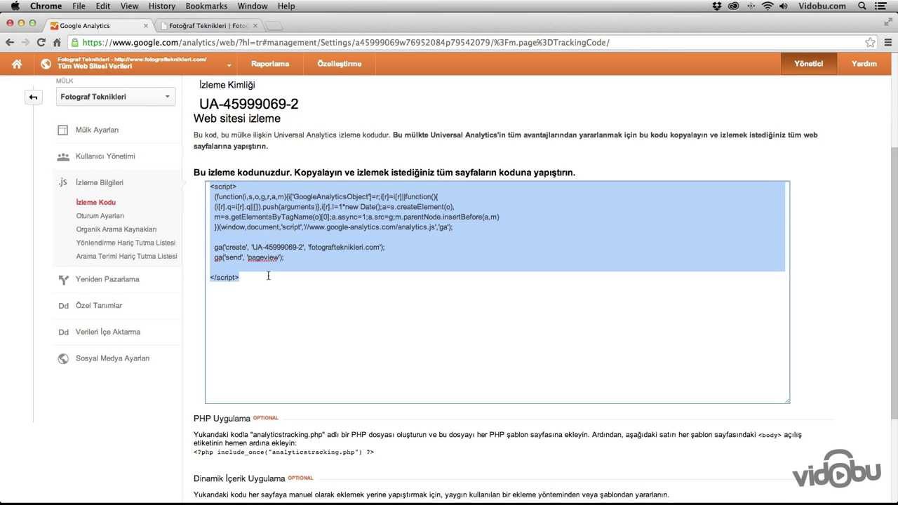 google analytics izleme kodu siteye nasil eklenir