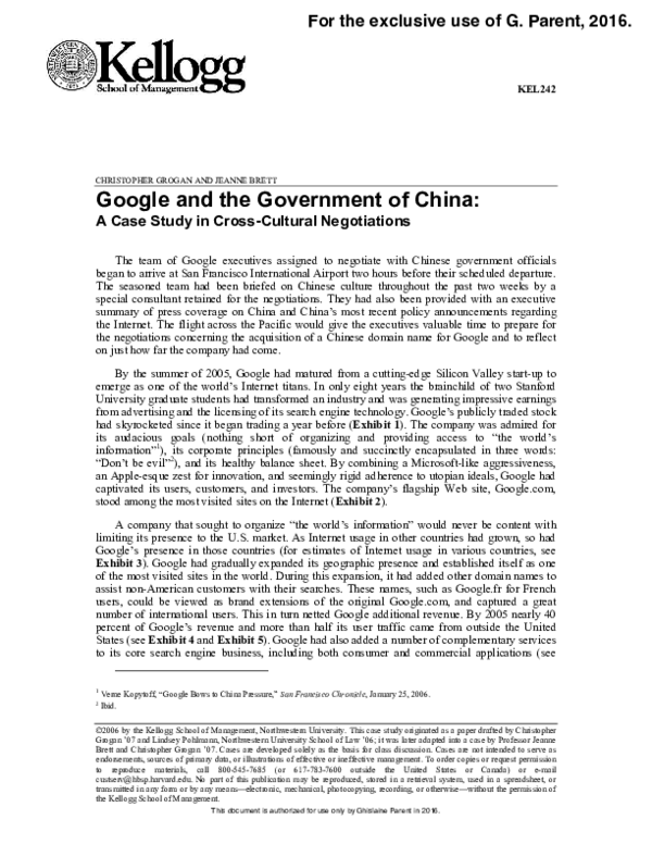 sage business cases google and the government of china a case study in cross cultural negotiations