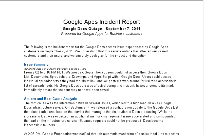 google outages issues and updates apps user group