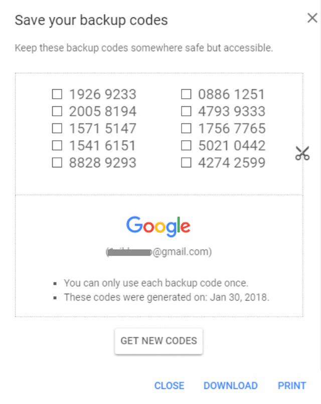 use backup codes while signing into gmail