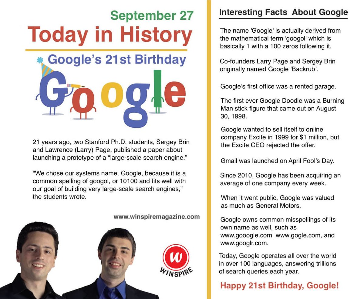 Stay up to date with google company news and products. Page was the chief executive officer of google from 1997 until august 2001 stepping down in favor of eric schmidt then from april 2011 until july 2015 when he moved to become ceo of alphabet inc. Google inc was finally established on september 4 1998 and the renaming of the search engine from backrub to google was decided.