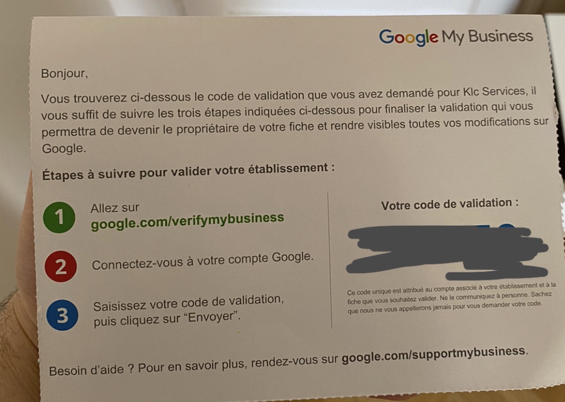 code de confirmation google my business