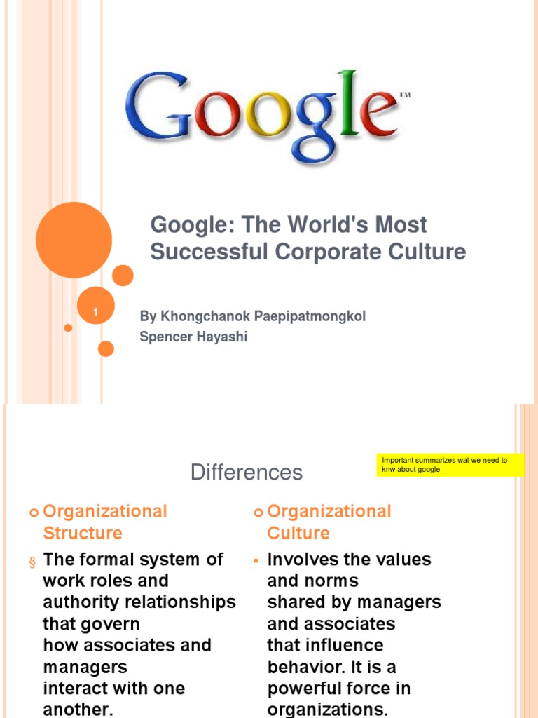 google s organizational culture its characteristics an analysis panmore institute