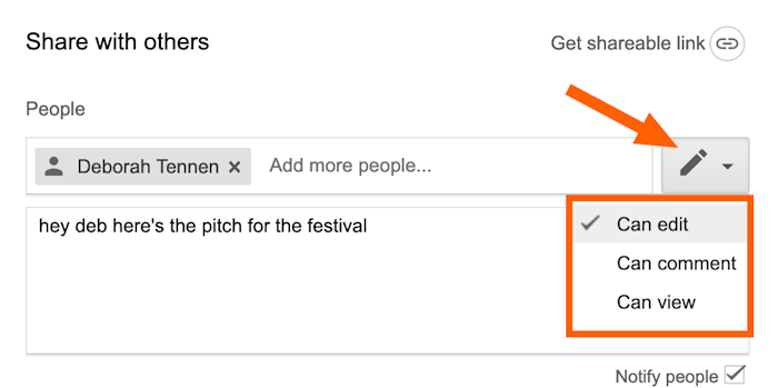 This is used to offer suggestions of people to add to files and share with. Dataflow permissions are assigned according to the role used to access pipeline resources. If you want to send a file or folder to someone so that they can view edit or comment on it you can share it with them directly in google drive docs sheets or slides or through a link or email attachment.