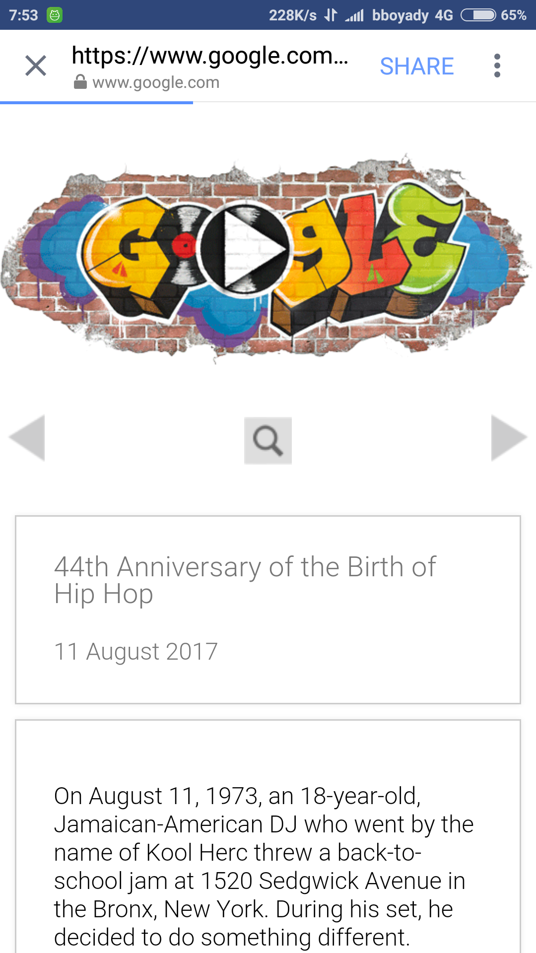 44th anniversary of the birth of hip hop