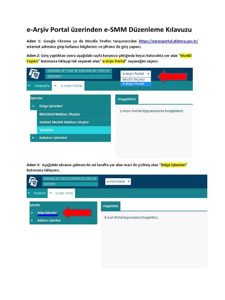 e arsiv portal giris ekrani