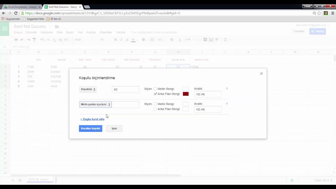 excel de kosullu bicimlendirme the unitech